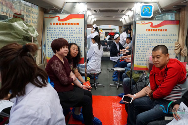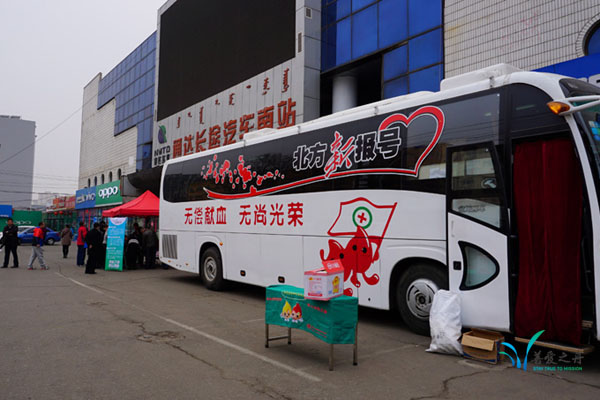 獻(xiàn)血車早早來(lái)到站前廣場(chǎng)