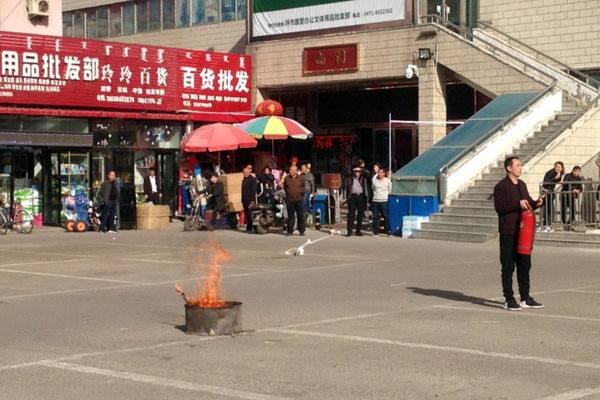 春季是火災(zāi)重點(diǎn)防控時期,做好安全管控是商場經(jīng)營發(fā)展工作中的重點(diǎn),同時為了進(jìn)一步增強(qiáng)全體員工及商戶的消防安全防范意識,熟練并正確掌握滅火器材在實(shí)際應(yīng)用中的操作方法,提高全員面對突發(fā)火災(zāi)事故時的初期火災(zāi)撲救能力。商場于2018年4月12日早8:45在通達(dá)商場南廣場舉行2018年春季實(shí)操滅火演習(xí)。
