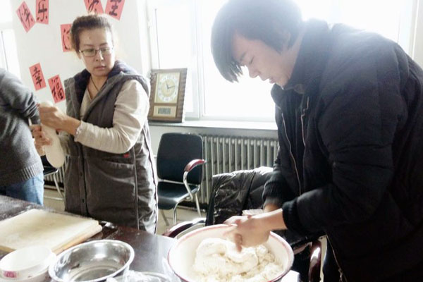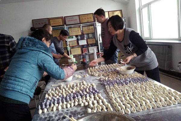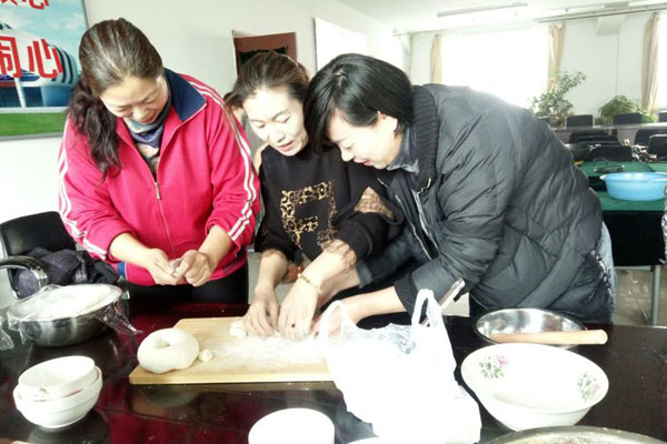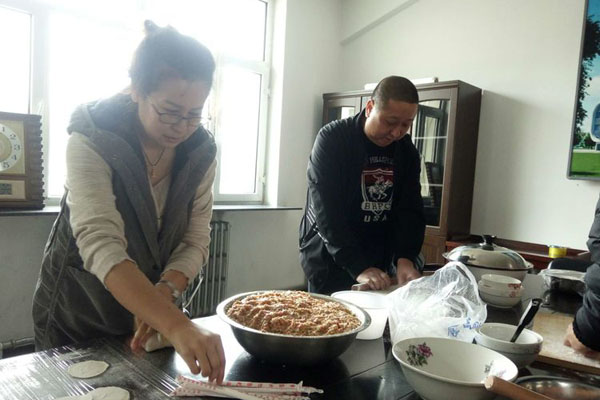 大家分工合作,你搟皮、我包餡,笑語不斷。