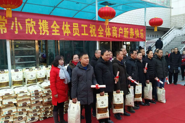 儀式結(jié)束后,所有商戶,工作人員盡然有序的離場,由經(jīng)營發(fā)展部門和環(huán)境服務(wù)部同事共同分成四個小組逐一將大米送到每家每戶