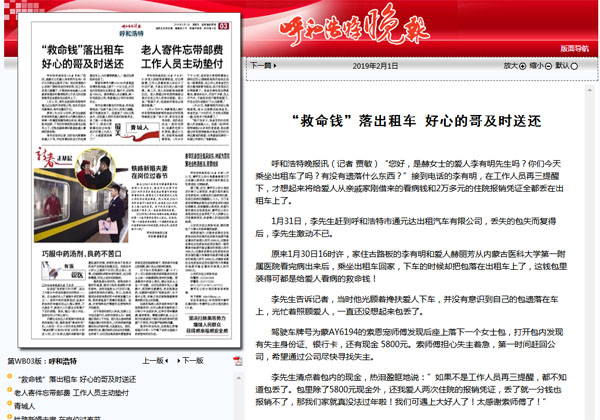”救命錢”落出租車 首府好心的哥及時(shí)送還 |